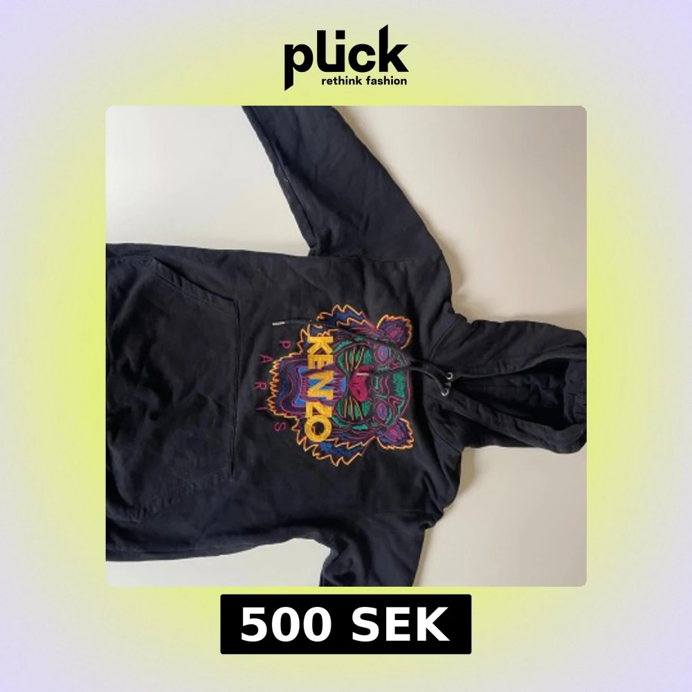Svart hoodie från Kenzo med ikonisk färgglad tigerbrodyr och Kenzo Paris-text på bröstet. Tröjan har huva med snörning och en stor magficka. Perfekt statement-plagg med cool streetkänsla och snygga detaljer i flera färger.
