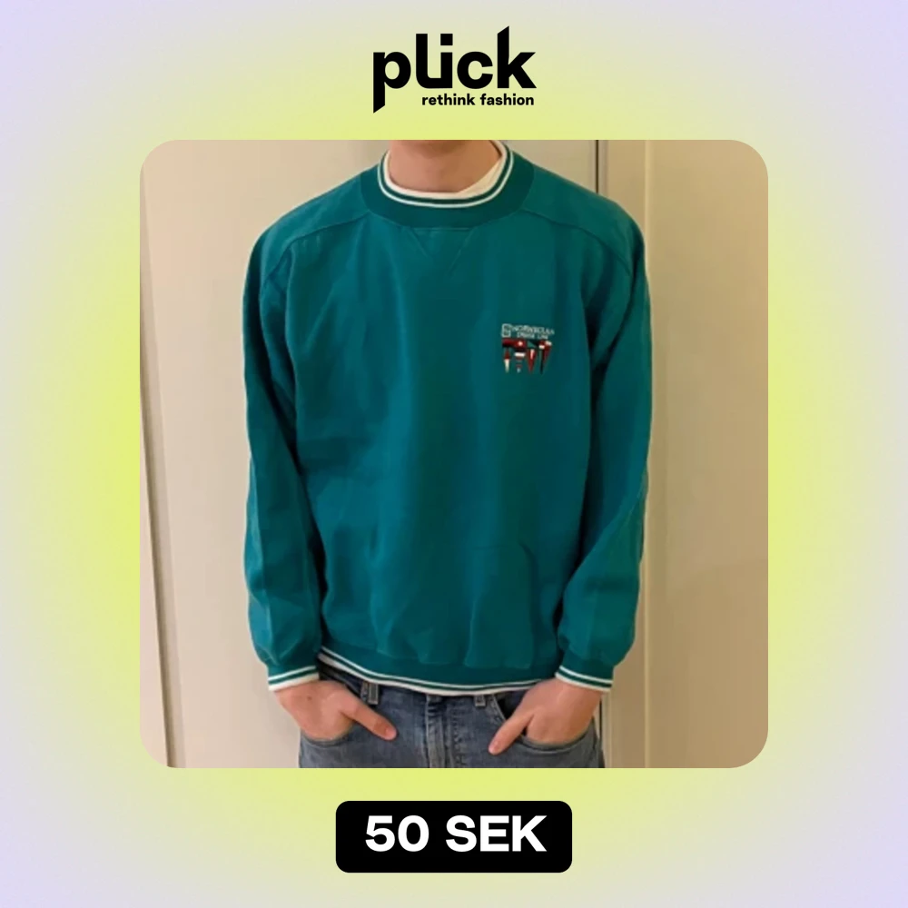 En turkos sweatshirt från Norwegian Cruise Line. Storleken är s/m men den känns som en vanlig medium, M. Kvaliten är bra.
