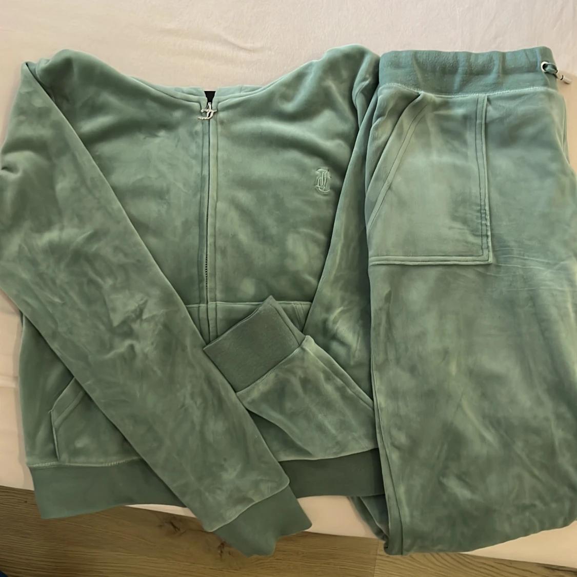Säljer mitt Juicy Couture set, storlek M i färgen ”chinois green”. Använd ett 2-3 gånger och tvättad 1 gång. alltså så gott som ny. Nypris, överdel 1200kr och underdel 1100. Säljer de för 1800kr tillsammans!