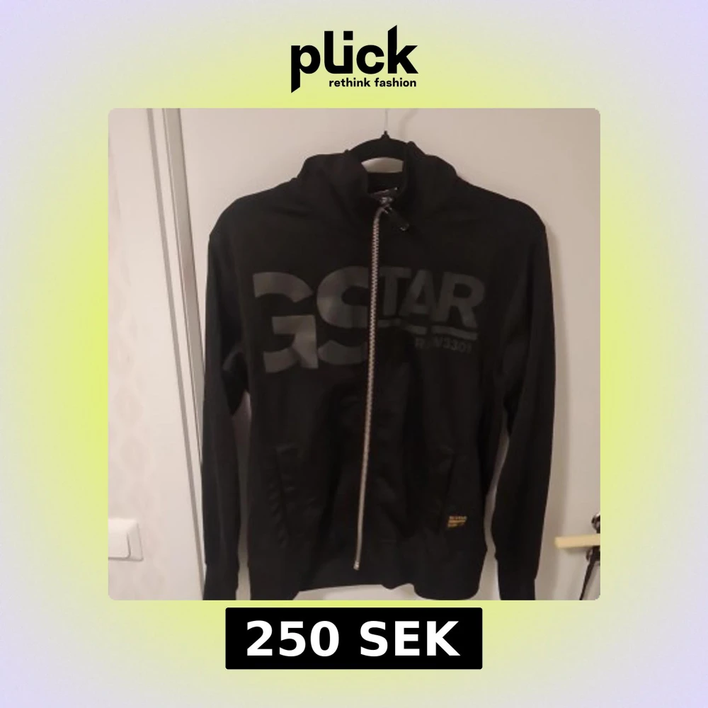 Säljer en svart jacka från G-Star RAW med dragkedja och Jackan har ett stort tryck på framsidan och en liten etikett med logotypen. Perfekt för en casual look.
