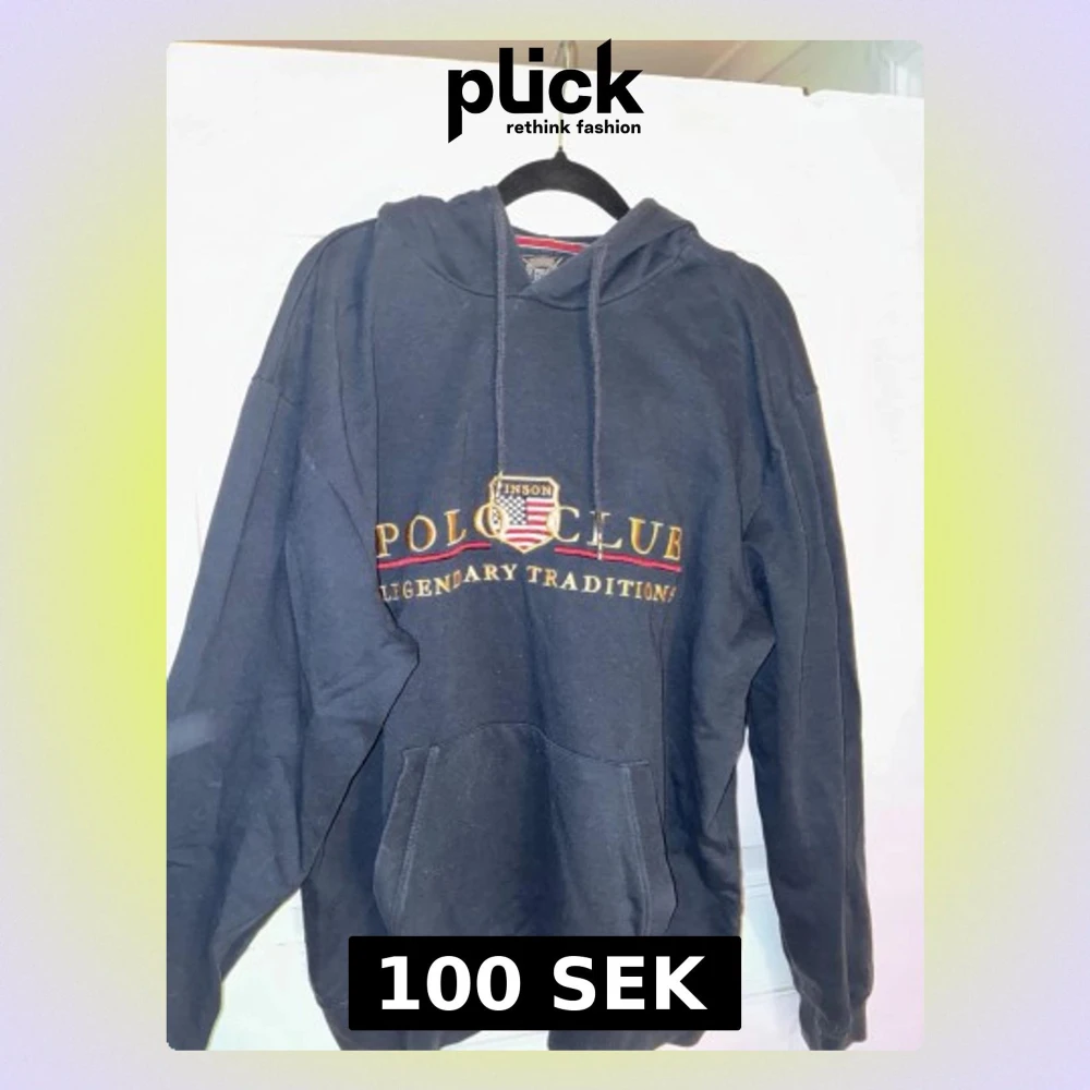 Säljer en marinblå hoodie från Polo Club. Det är unisex. Storlek L men liten i storlek så som en S/M. Kommer även sälja tillhörande mjukisbyxor separat.