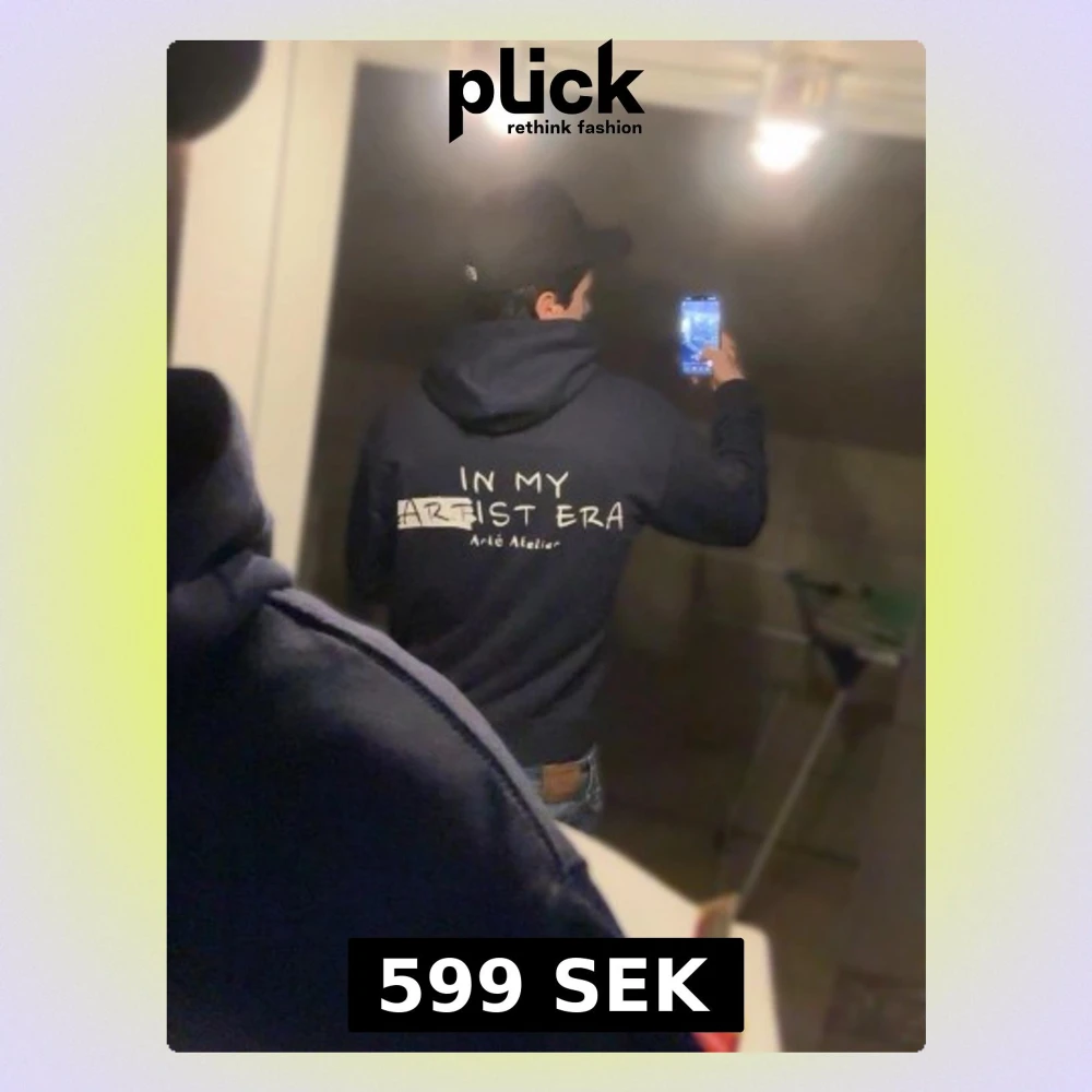 Snygg hoodie från Árteatelier i mörkblå färg. Har tryck både på fram- och baksidan. Finns i storlekar S,M,L