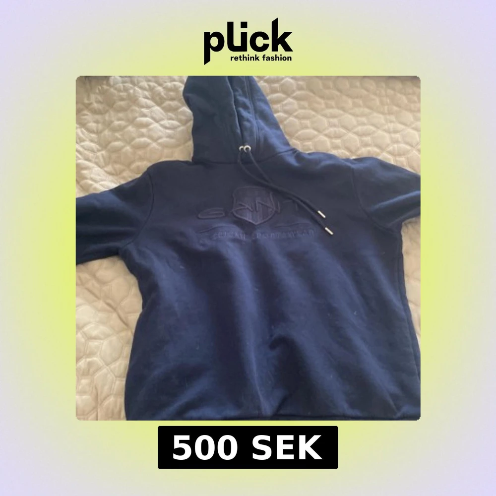 Säljer en mörkblå hoodie från Gant. Nästan aldrig använd och är nästan i nyskick.