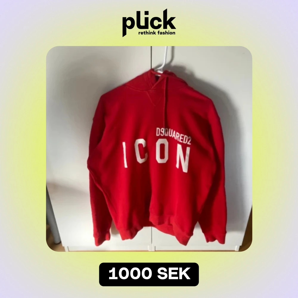 Röd Dsquared hoodie i gott skick. Storlek L, skulle även passa M lite oversized.