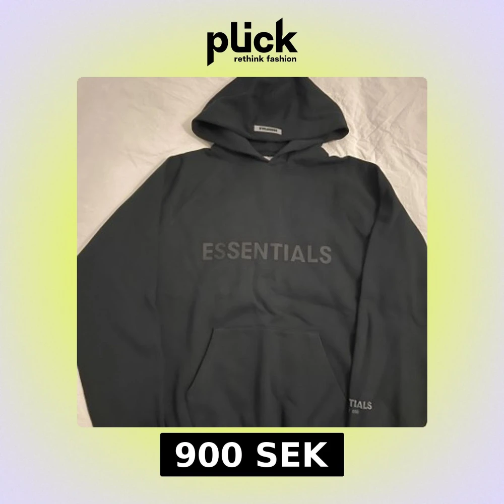 Svart hoodie från Essentials med stor logga på bröstet och mindre tryck vid ärmen. Tröjan har huva, känguruficka och långärmad design. Perfekt för dig som gillar streetwear och enkel stil. Mjuk och skön känsla tack vare bomullsmaterialet.