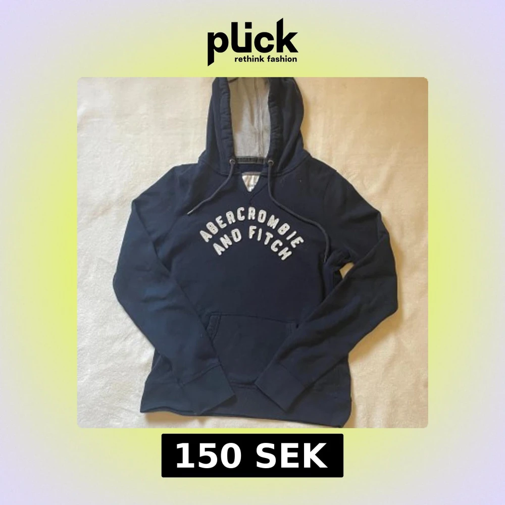 Säljer en snygg mörkblå hoodie från Abercrombie & Fitch med vit text på framsidan. Tröjan har en klassisk känguruficka och en bekväm huva med dragsko. Perfekt för en avslappnad stil.