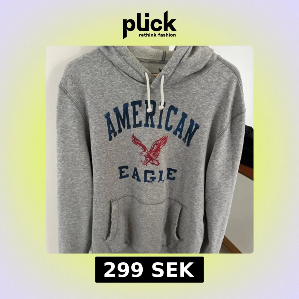Tjena, lägger nu upp denna as feta American eagle vintage hoodie! Tröjan är i bra skick utan defekter och modellen säljs inte längre! Storleken är large men skulle säga att den mer sitter som en medium! Skriv privat vid frågor eller funderingar!