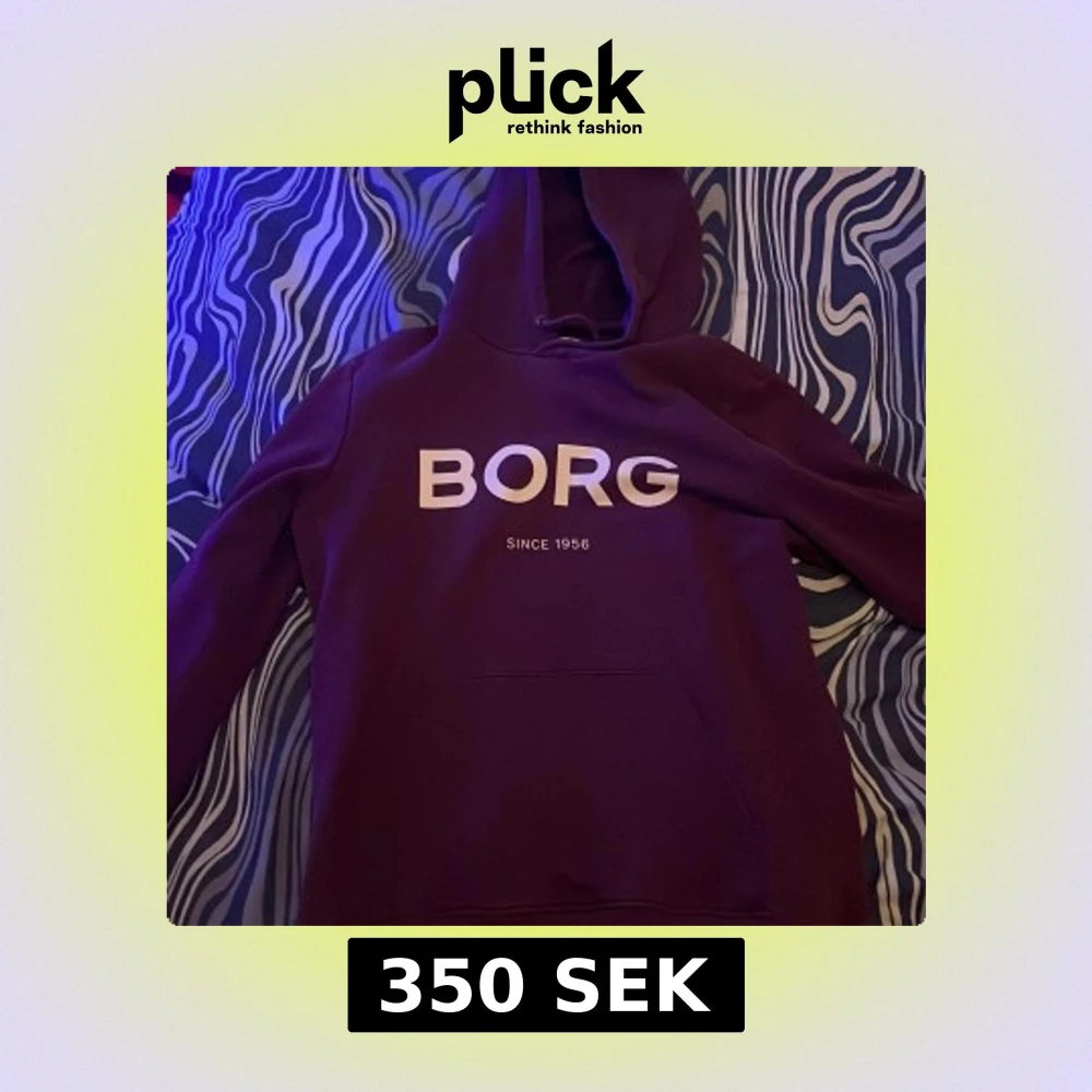 Oanvänd Vinröd hoodie från Borg passar perfekt till dig som har storlek L passsr även M men är lite stor