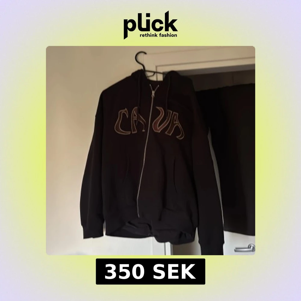 Säljer en svart hoodie från The Cava Company med dragkedja och huva. På bröstet står det 'CAVA' i stora bokstäver. Hoodien har fickor framtill och justerbara snören i huvan. Perfekt för en avslappnad och cool stil.