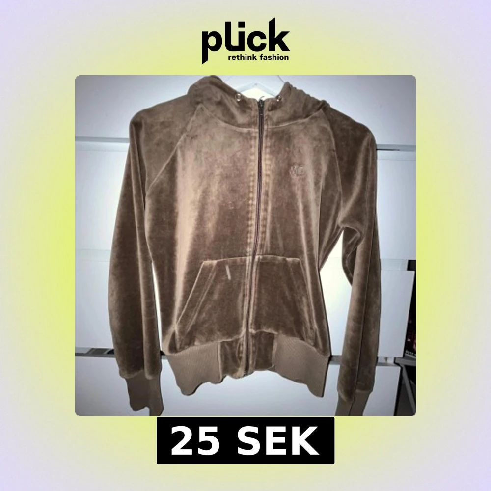 Säljer en brun velourjacka från WE med dragkedja och huva. Jackan har långa ärmar och ribbade muddar vid ärmslut och nederkant. Perfekt för en avslappnad stil.