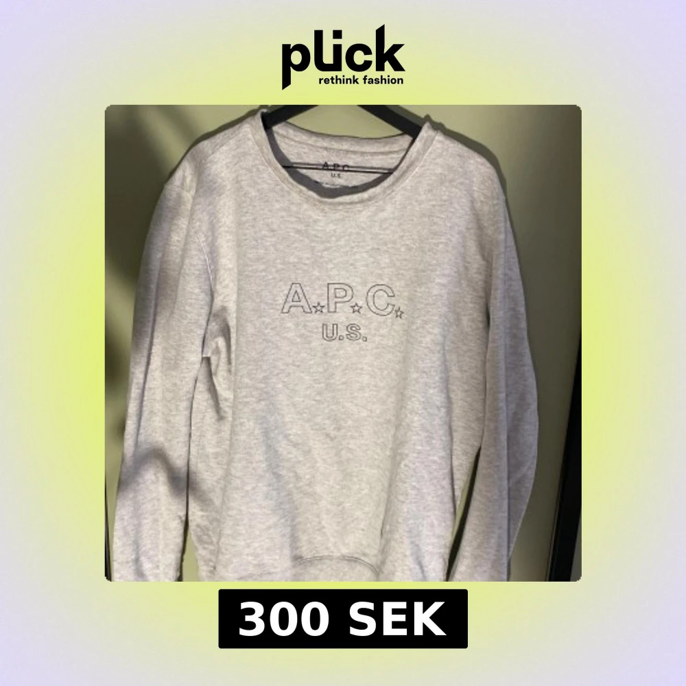 Grå sweatshirt från A.P.C. U.S. med tryckt logga framtill. Två små hål på vänsta inne arm som man inte ser, väldigt sällsynt tröja.