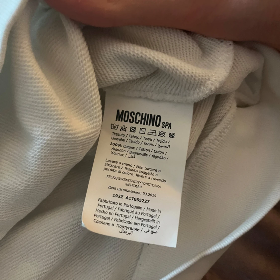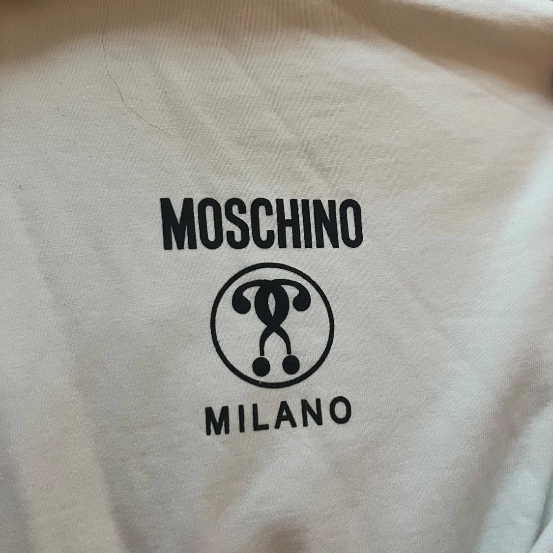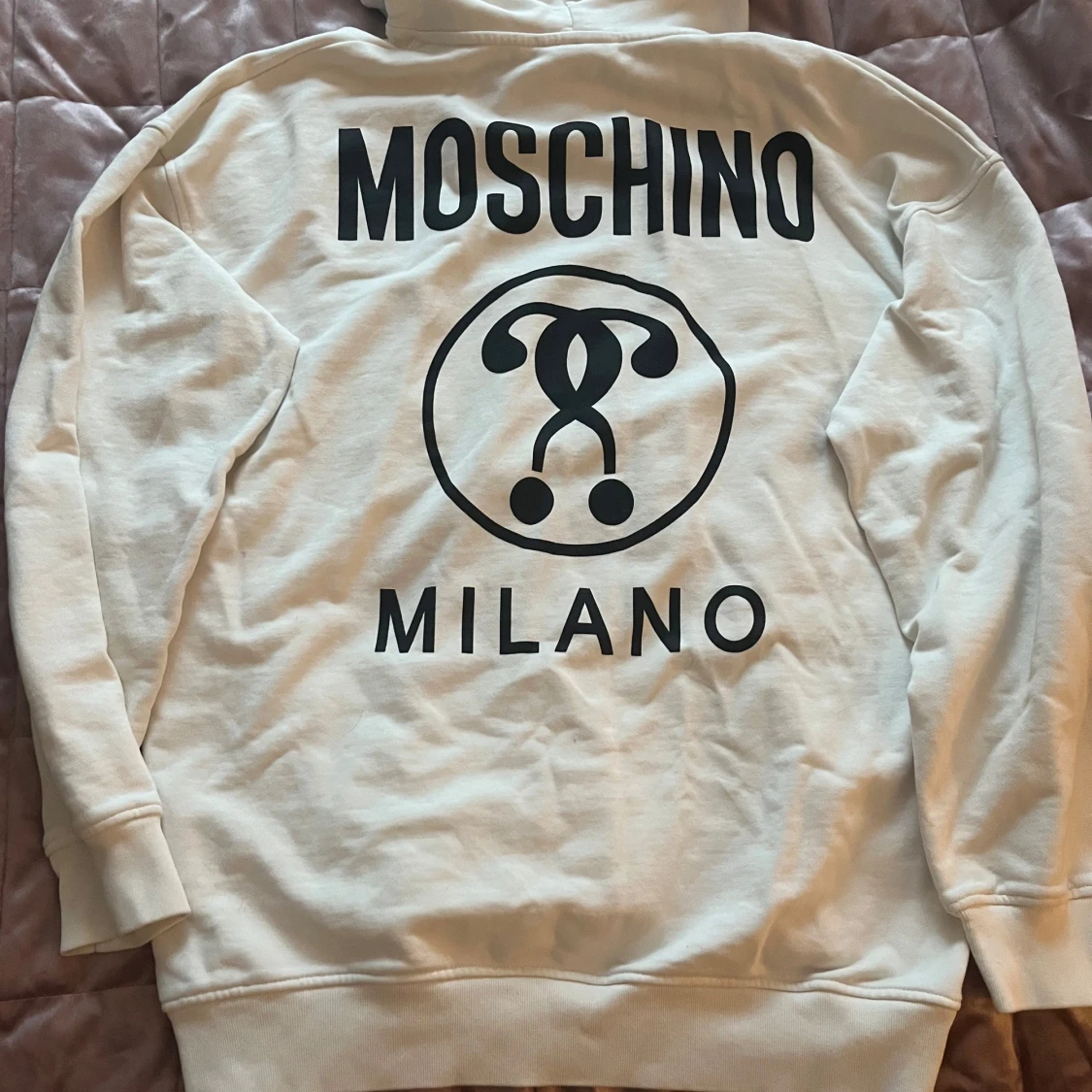 Moschino Milano Hoodie – Vit – Storlek L Säljer denna stilrena och exklusiva hoodie från Moschino i klassisk vit färg. Tryck både fram och bak med det ikoniska Moschino Milano-logot. Perfekt för dig som vill sticka ut med en designerlook, samtidigt som du håller det avslappnat och bekvämt. 🔹 Färg: Vit 🔹 Storlek: L 🔹 Passform: Normal fit 🔹 Material: Bomull 🔹 Skick: mycket bra 🔹 Detaljer: • Stor logga med tryck på ryggen • Mindre logga på bröstet Skriv för frågor!