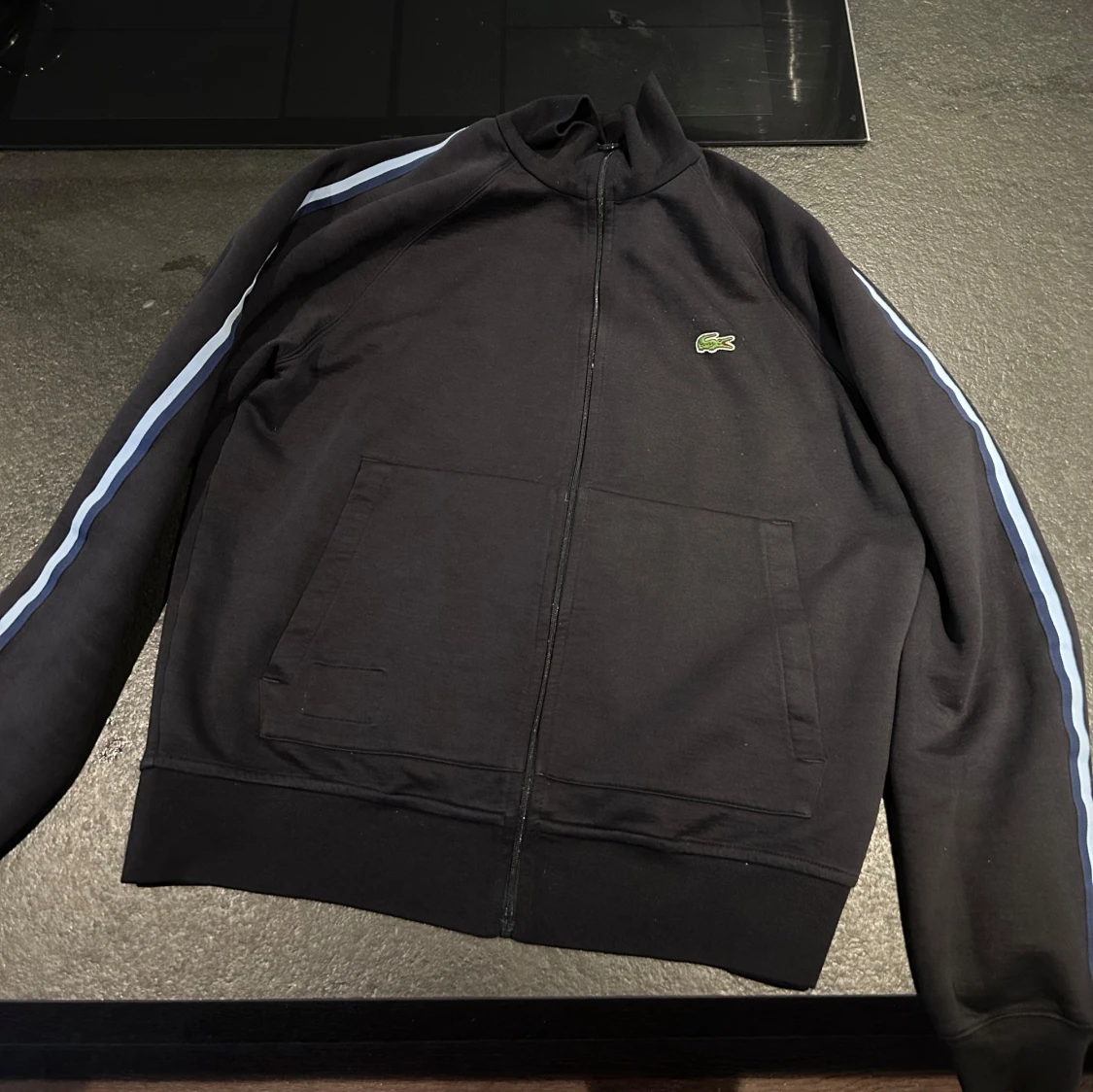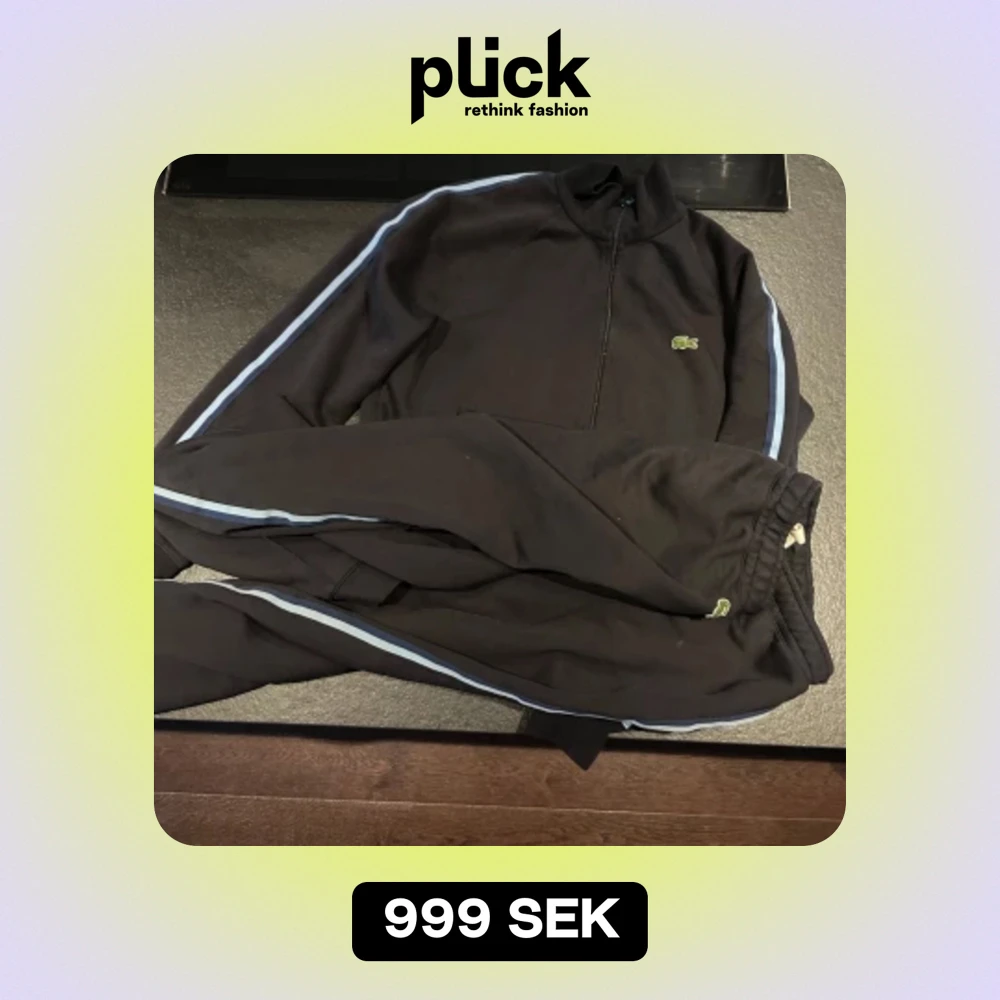 Lacostedress där den övre delen är storlek M och den under delen storlek L. Byxorna kan öppnas och är inte stängda där nere