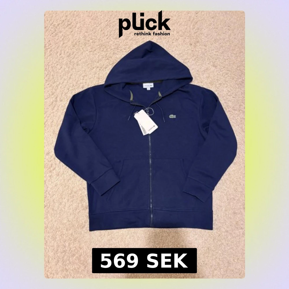Stilren och klassisk Lacoste hoodie med hel dragkedja i marinblå färg. Tidlös design med ikoniska gröna krokodilen broderad på bröstet. Perfekt vardagshoodie som funkar året runt. • Skick: Helt ny, nästan helt oanvänd • Färg: Marinblå • Storlek: [L] • Passform: Normal / regular fit • Material: Mjuk bomullsblandning • Detaljer: Huva med dragsko, dragkedja framtill, fickor T Så stylar du den • Till jeans eller chinos för clean vardagslook • Perfekt över t-shirt eller piké • Funkar både cas