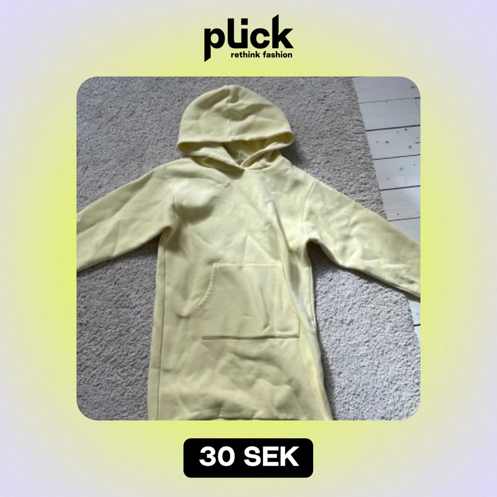 En stor, lång , varm och bekväm gul hoodie med mjukt material inuti!Använd någon enstaka gång! Med en väldigt svag fläck på högra armen som jag tror går bort i tvättmaskinen! Och har en ficka där fram!👌🏼😍❤️