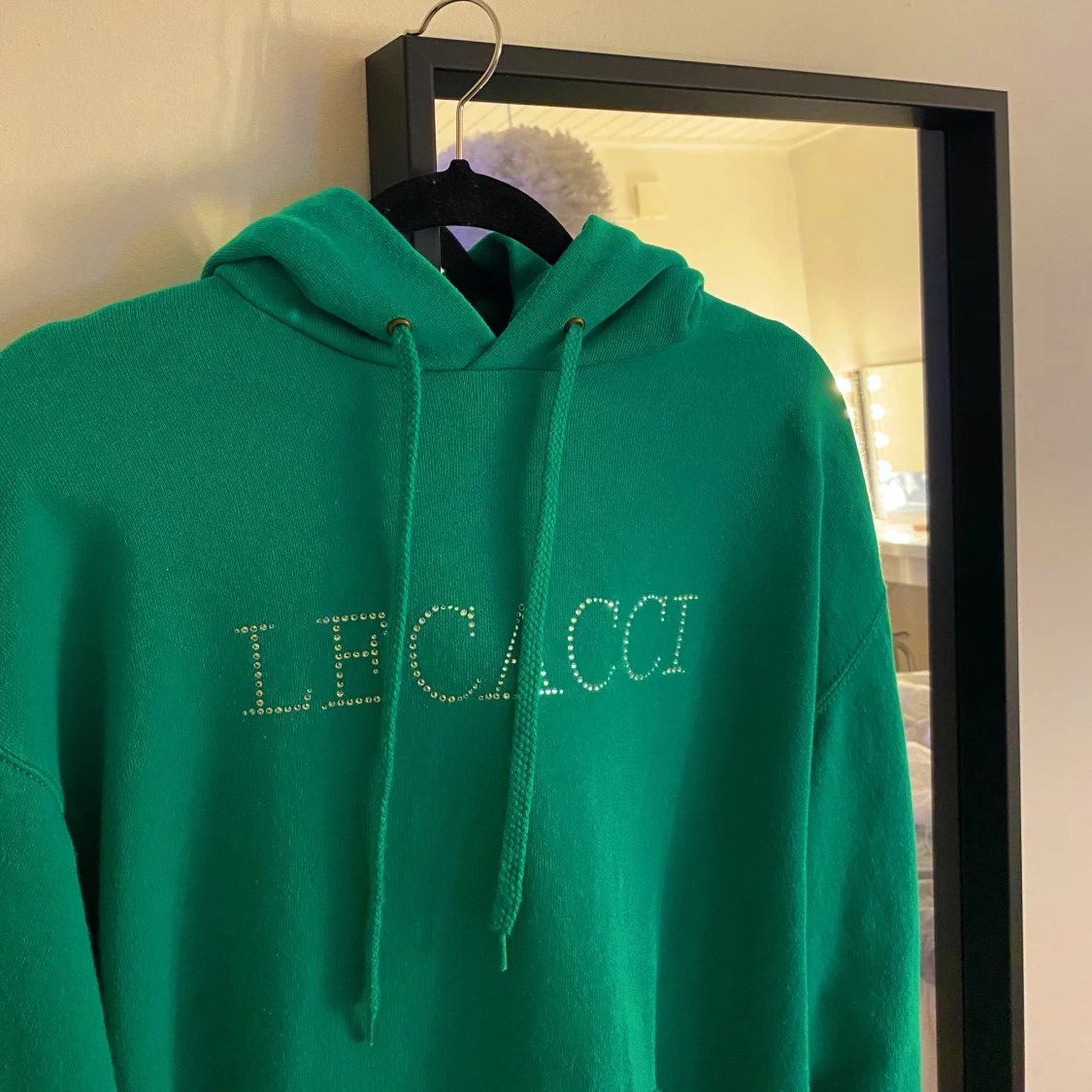 Grön hoodie med fjäril på ryggen från leccaci i storlek M.
