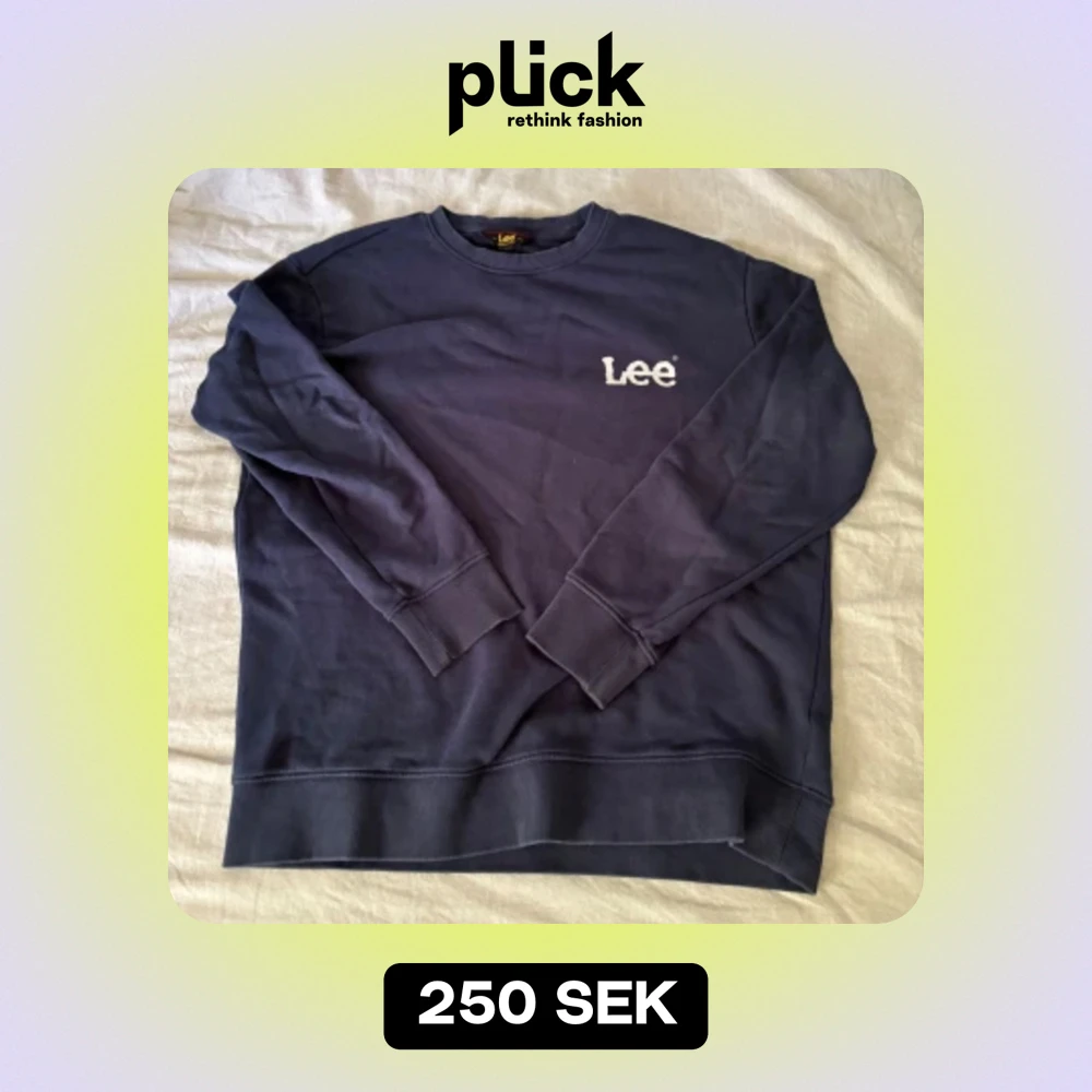 En mörkblå tjocktröjan från Lee. Den är använd men det syns inte! Skriv om du har fler frågor🫶