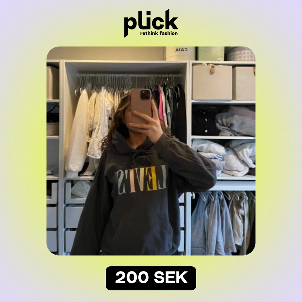 Mörkgrå Levis hoddie med färgat tryck. Strl. S, fin oversized passform i ett tyngre material.
