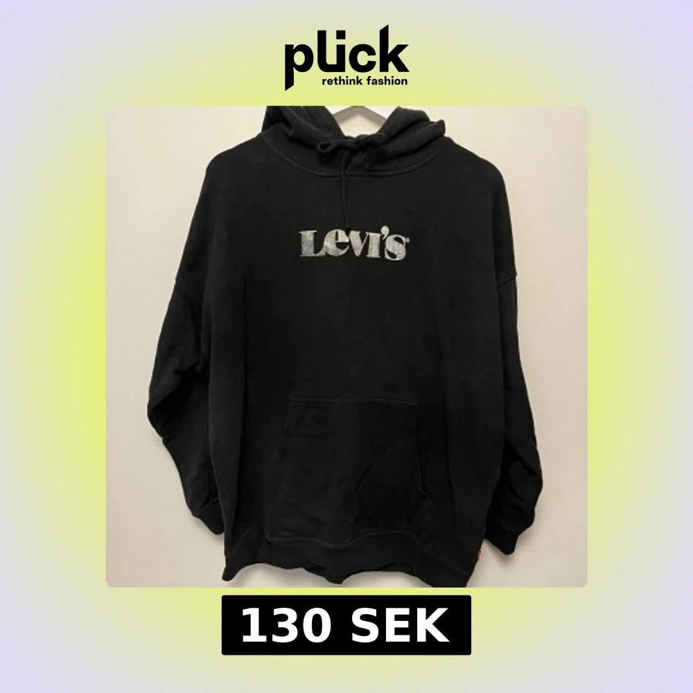 Svart hoodie från Levi's med stor vit logga på bröstet. Tröjan har huva med snörning och en stor magficka framtill. Perfekt för en avslappnad och cool stil.