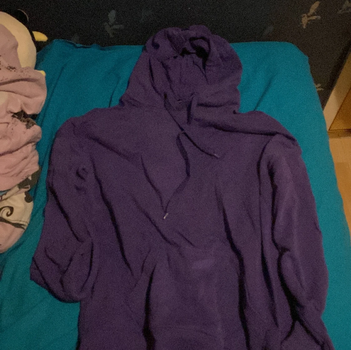 En lila oversized hoodie (typ M-L) jag fick av en vän förra året men nu har tröttnat på och säljer :)
