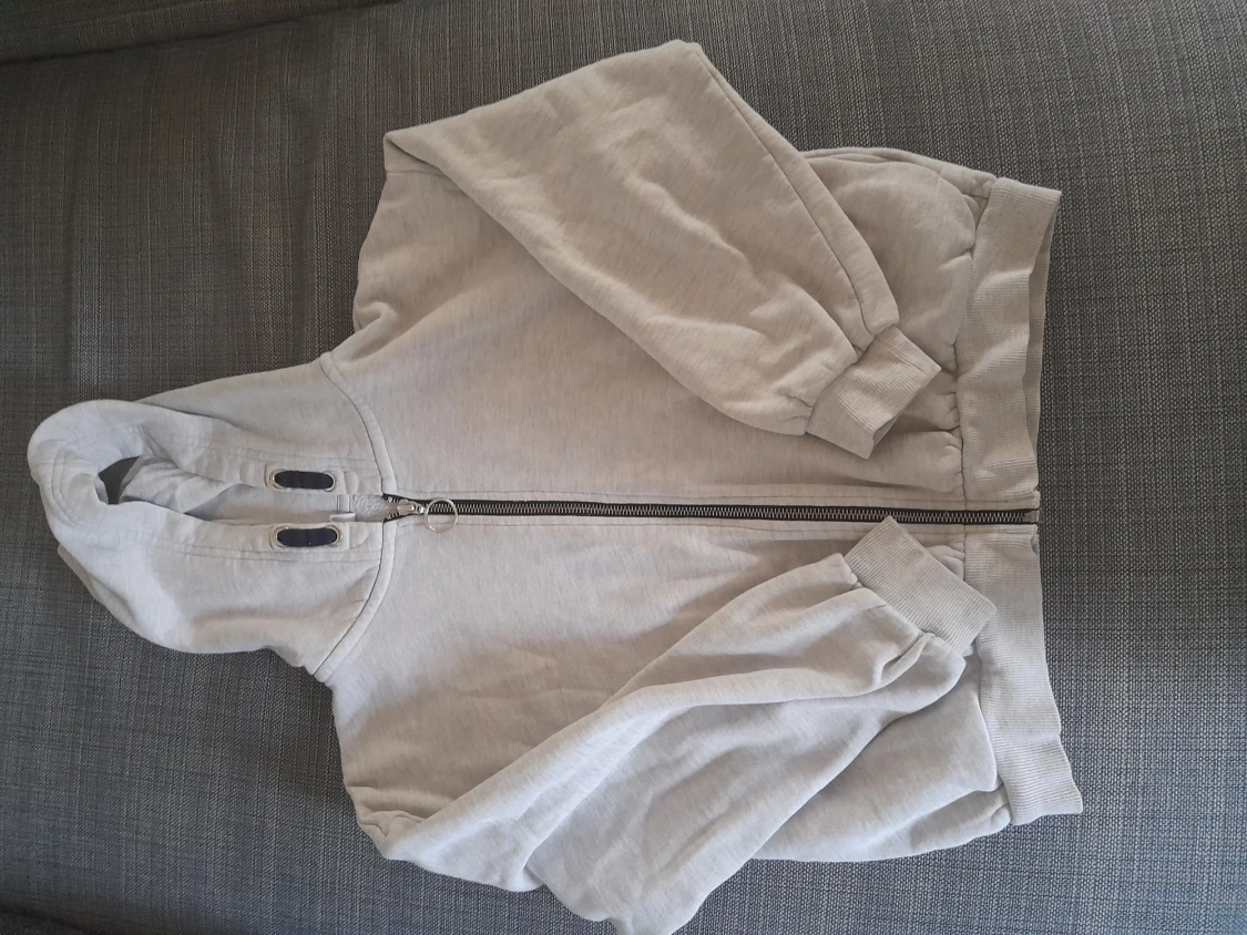En ljusgrå munkjacka med dragkedja och luva från Lindex!