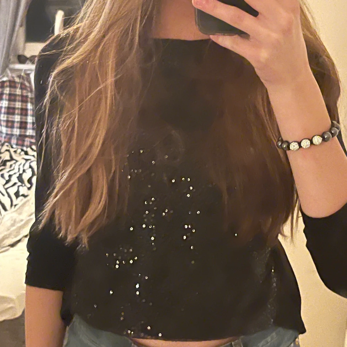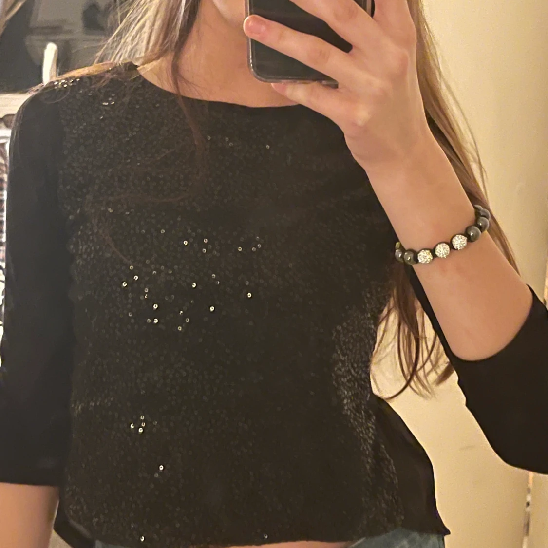 Säljer min svarta paljett tröja pga den kommer inte inte till användning. Man får kavla upp armarna eftersom att den är kort i armarna. Skriv om ni är intresserade ❤️