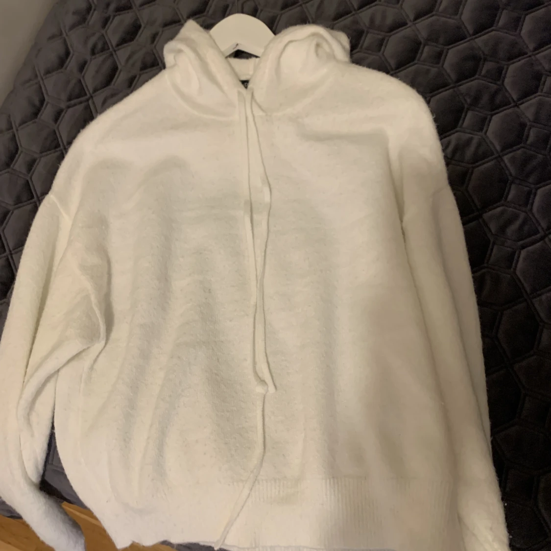 Vit stickad hoodie från Lindex. Storlek XS men denne ganska stor, passar både S och M.