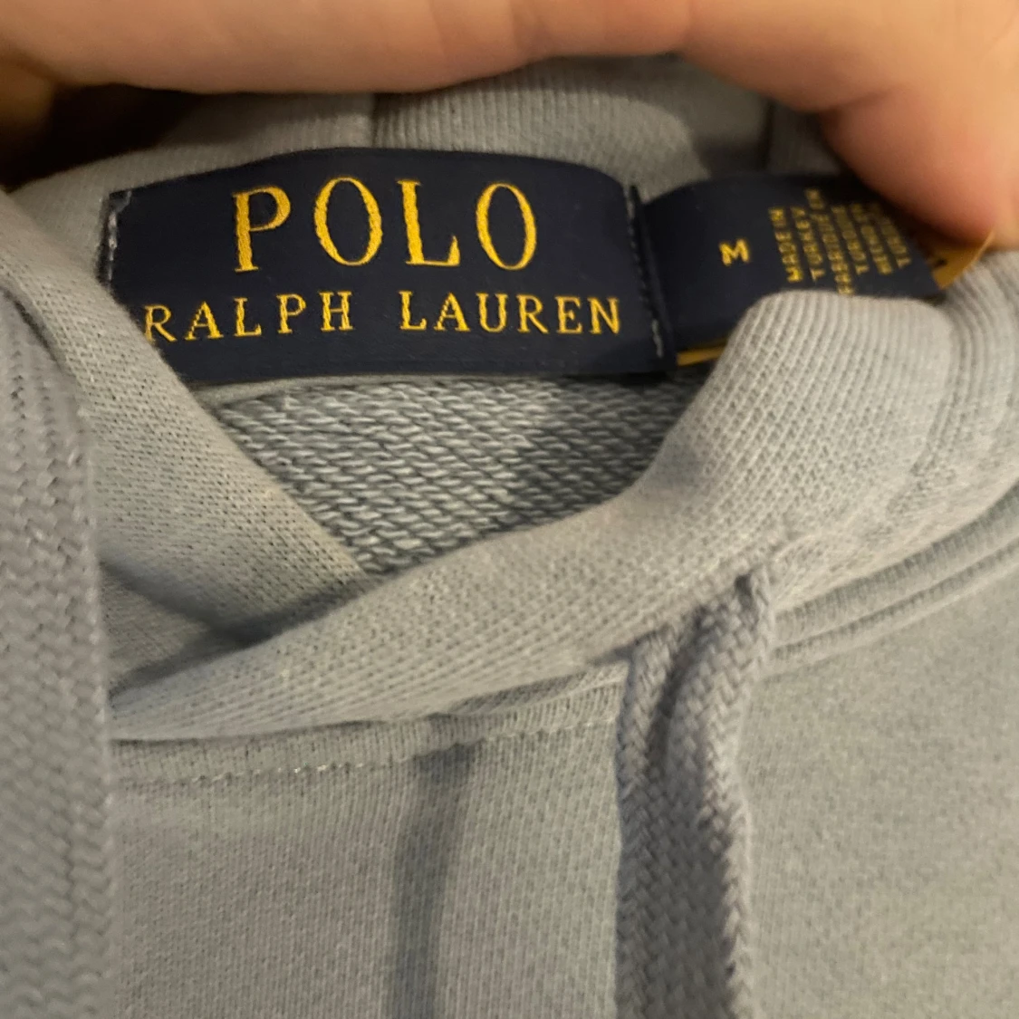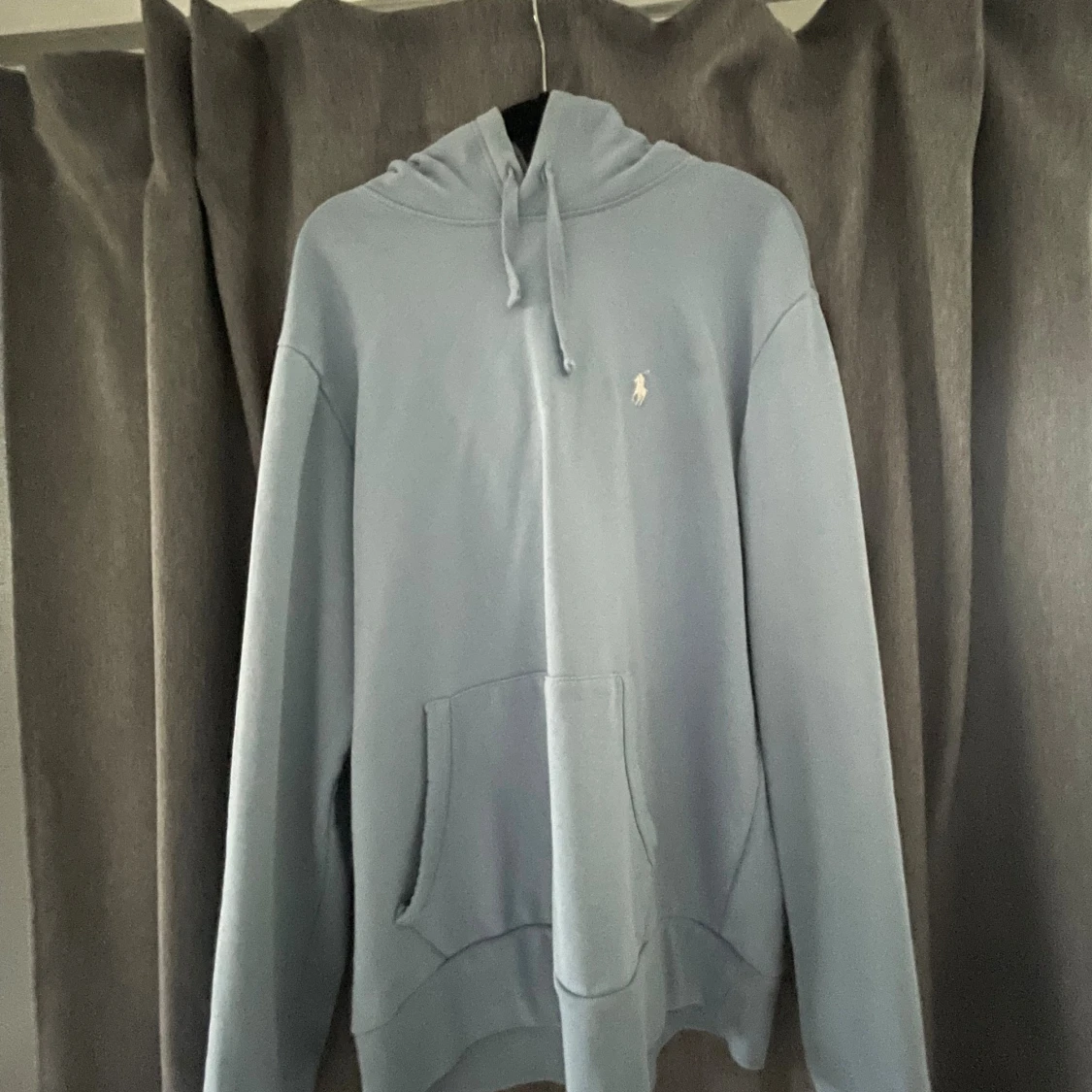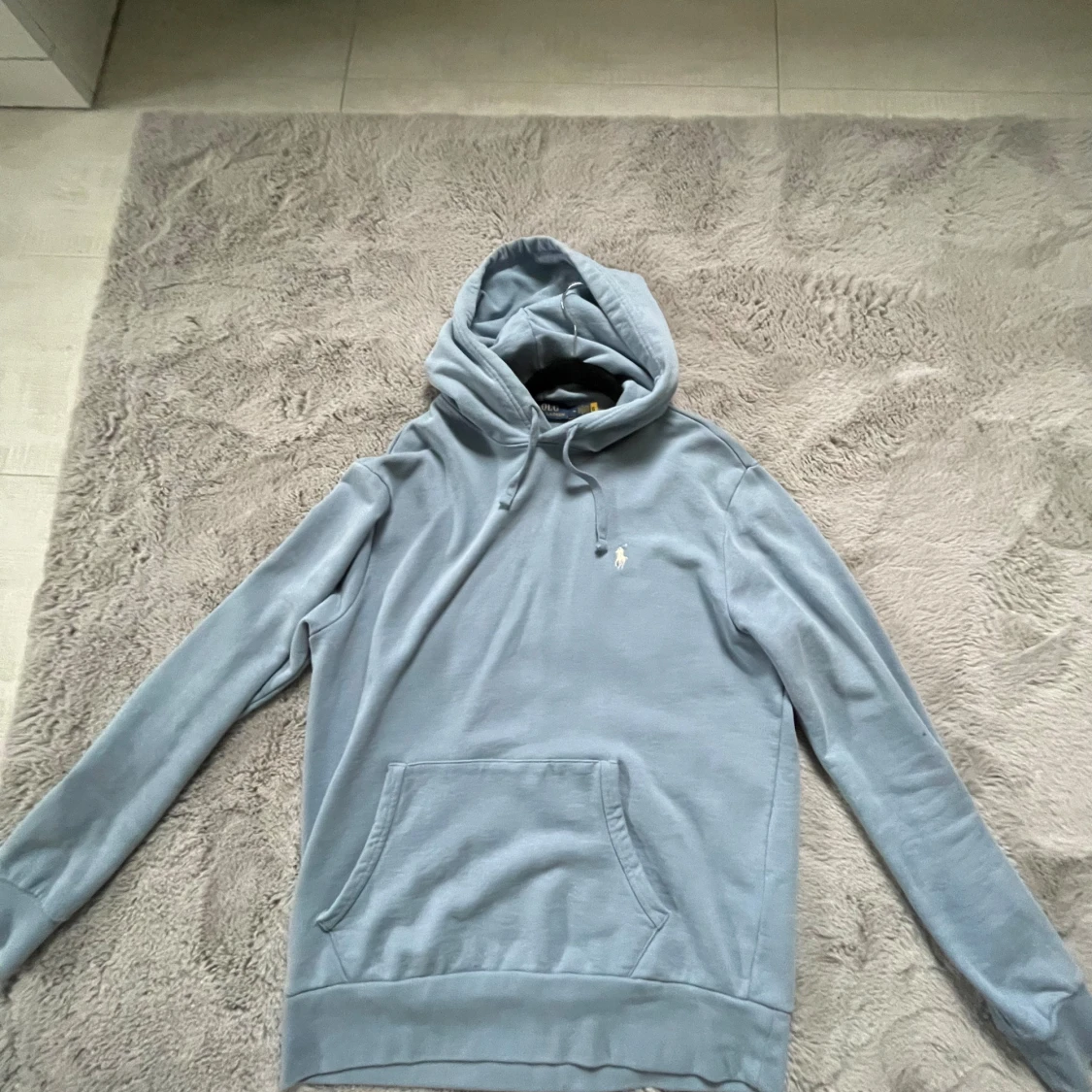 Säljer en stilren ljusblå hoodie från Polo Ralph Lauren med klassisk huva och snörning. Tröjan har en broderad logga på bröstet, känguruficka och är tillverkad i mjuk bomull. Perfekt för chill dagar och enkel att matcha med jeans eller joggers.