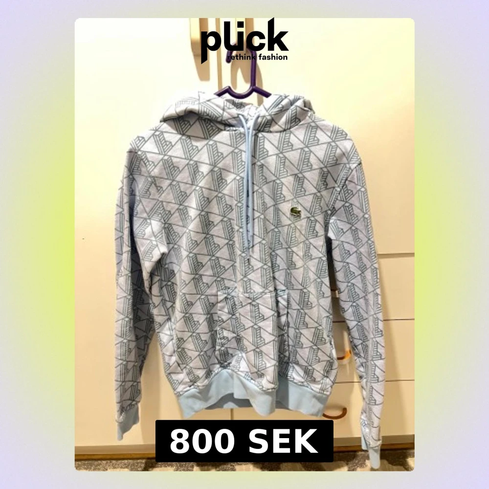 Säljer en ljusblå hoodie från Lacoste med geometriskt mönster i grått. Klassisk passform, huva med snörning och känguruficka framtill. Ikoniska krokodilloggan på bröstet. Perfekt för dig som vill ha en snygg och bekväm streetstyle.