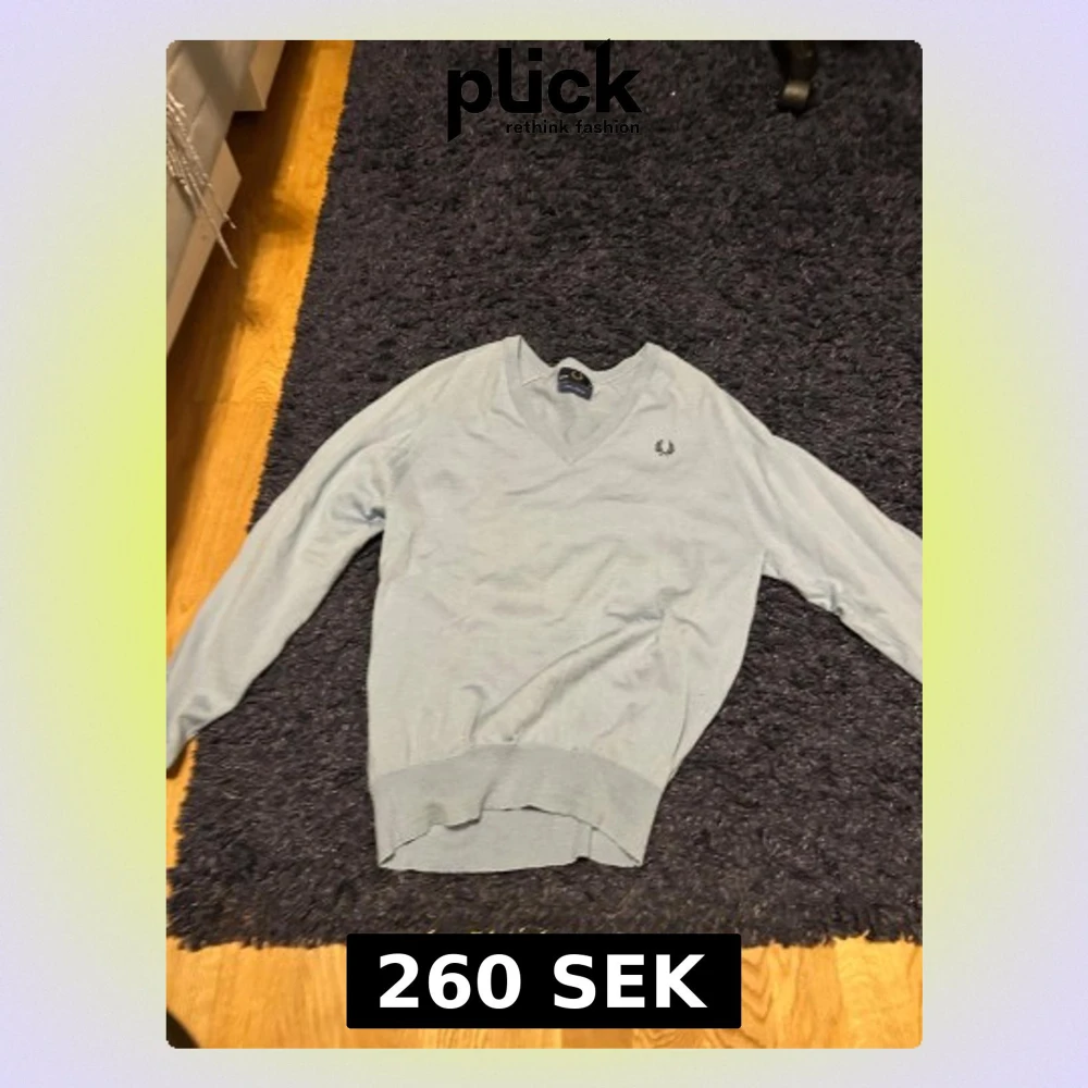 Snygg ljusblå v-ringad tröja från Fred Perry med broderad logga på bröstet. Tröjan är stickad i mjukt material och har långa ärmar samt ribbade muddar vid ärmslut och nederkant. Perfekt för dig som gillar klassisk stil med en modern touch.
