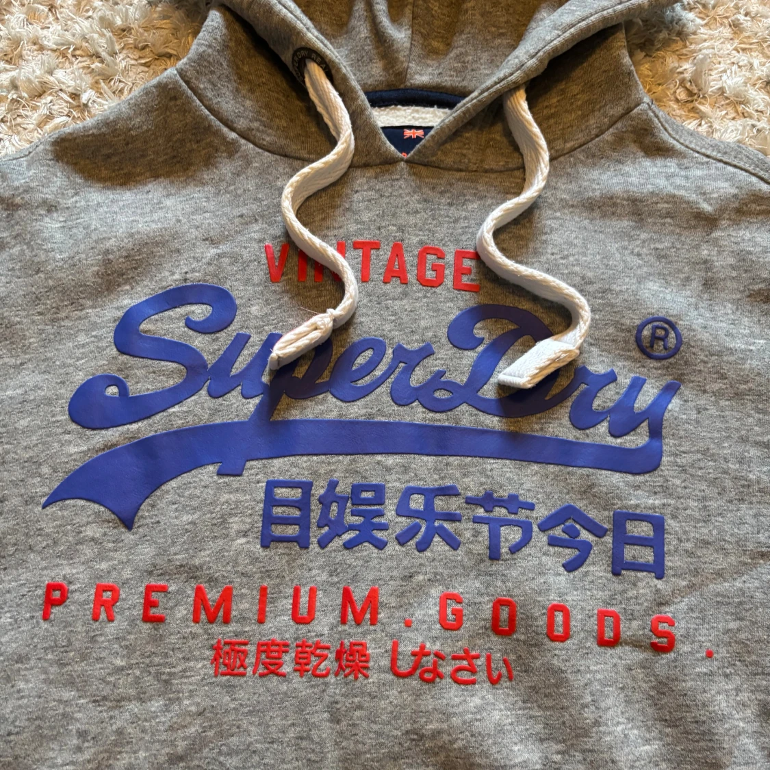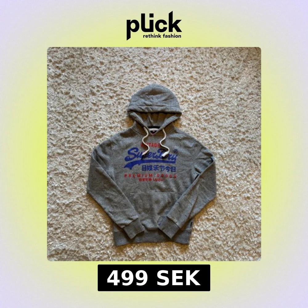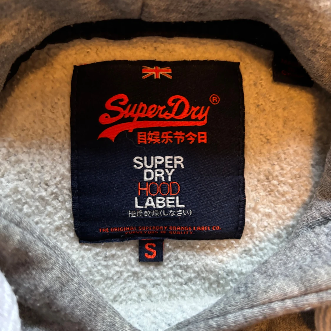 Snygg grå hoodie från superdry. Använd men i bra skick. Storlek S men tycker den sitter lite större. Tveka inte på o skriva vid fler frågor!