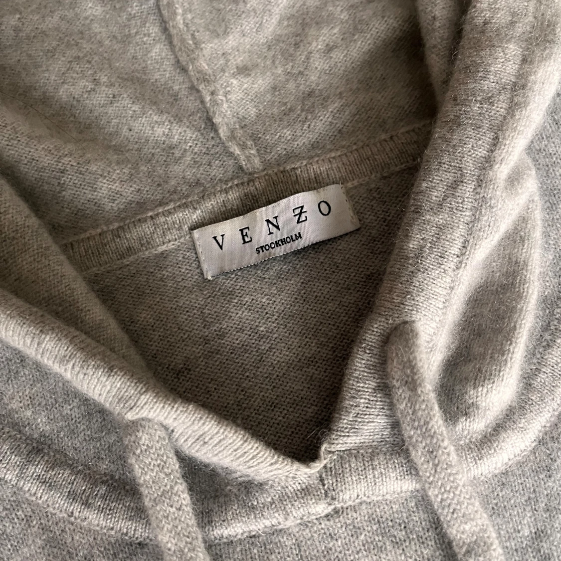 Supermjuk ljusgrå hoodie från Venzo i kashmir. Klassisk modell med huva och snörning, ribbade muddar och lång ärm. Perfekt för dig som vill ha en stilren och lyxig tröja med skön passform.
