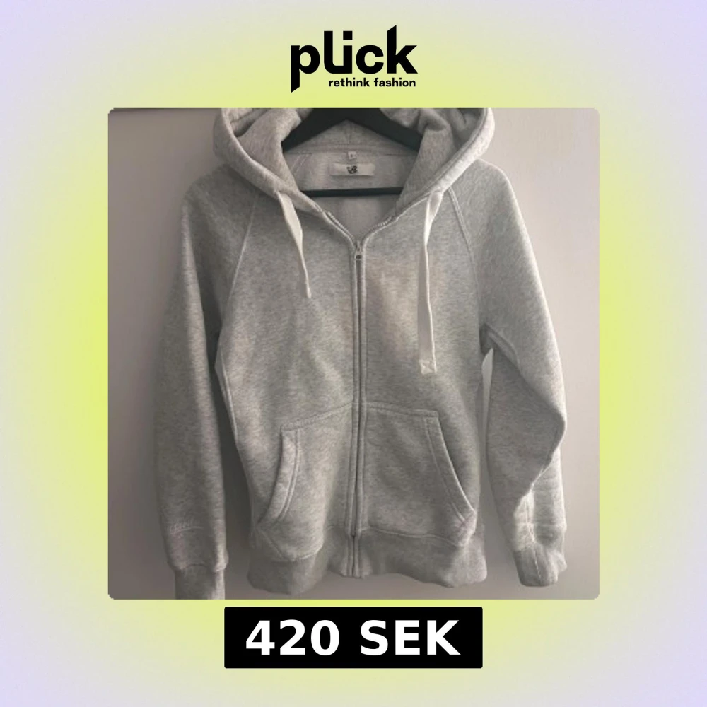 Ljusgrå hoodie med dragkedja, S