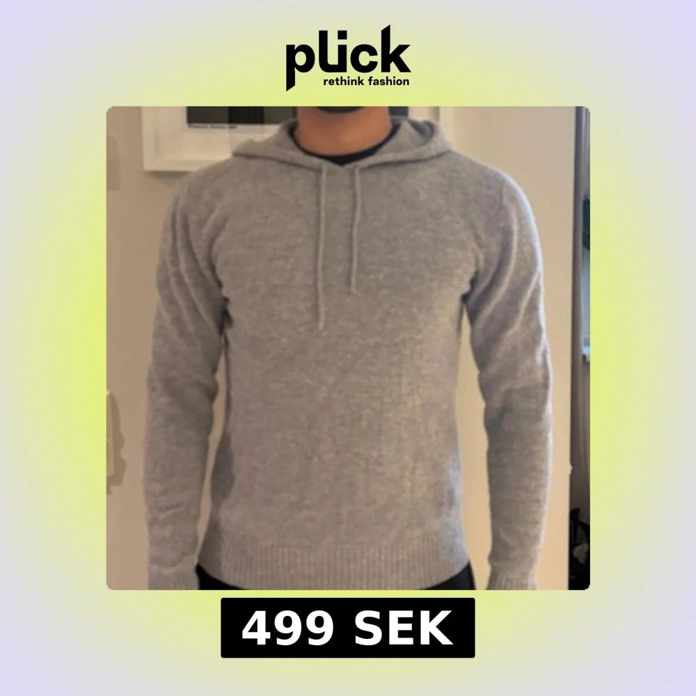 Snygg ljusgrå stickad hoodie. Passar till allt. Modellen är 180, väger 70