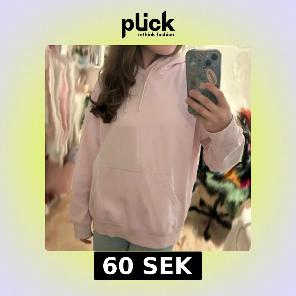 Säljer en ljusrosa hoodie från H&M. Den har en klassisk design med huva och dragsko samt en stor magficka🫶Den har lite längre modell💕 Har tecken på användning (se snören) men inga större defekter💕 Sparsamt använd☺️