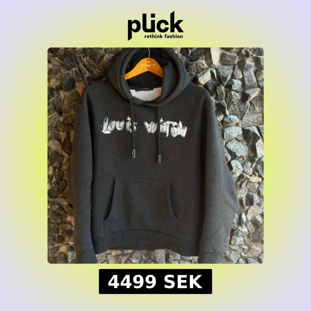 Snygg svart hoodie från Louis Vuitton med tryckt logotyp på framsidan. Tröjan har en klassisk känguruficka och justerbar huva med dragsko. Perfekt för en stilren och bekväm look. Skriv vid frågor