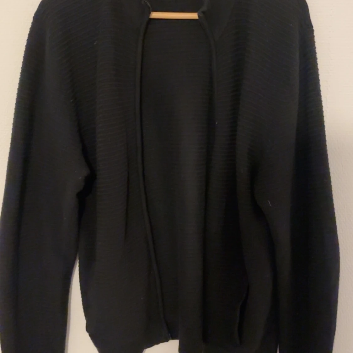 Säljer en stilren svart stickad hel zip tröja med dragkedja. Jackan har en enkel design med och är perfekt för alla dagar. Den är både bekväm och lätt att matcha med olika outfits. Skick 10/10 från dressmann.