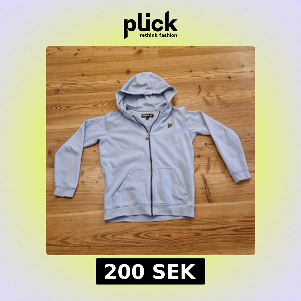 Snygg ljusblå hoodie från Lyle & Scott med dragkedja och huva. Tröjan har ett broderat gult logomärke på bröstet, två fickor fram och långa ärmar. Perfekt för chill dagar och enkel att matcha med jeans eller joggers.