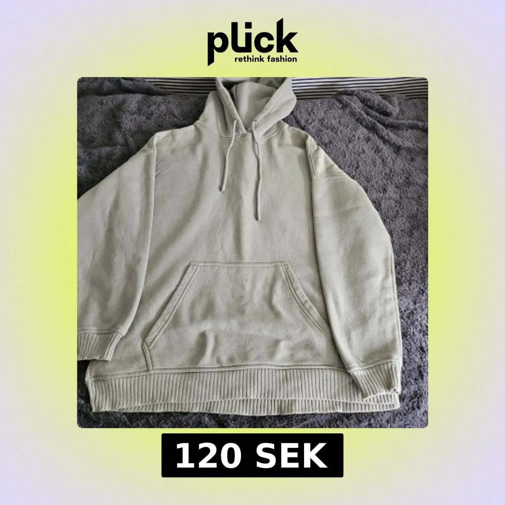 Säljer en mysig beige hoodie med känguruficka och justerbar huva. Perfekt för kyliga dagar och avslappnade stunder. Ribbstickade muddar vid ärmslut och nederkant ger en skön passform.