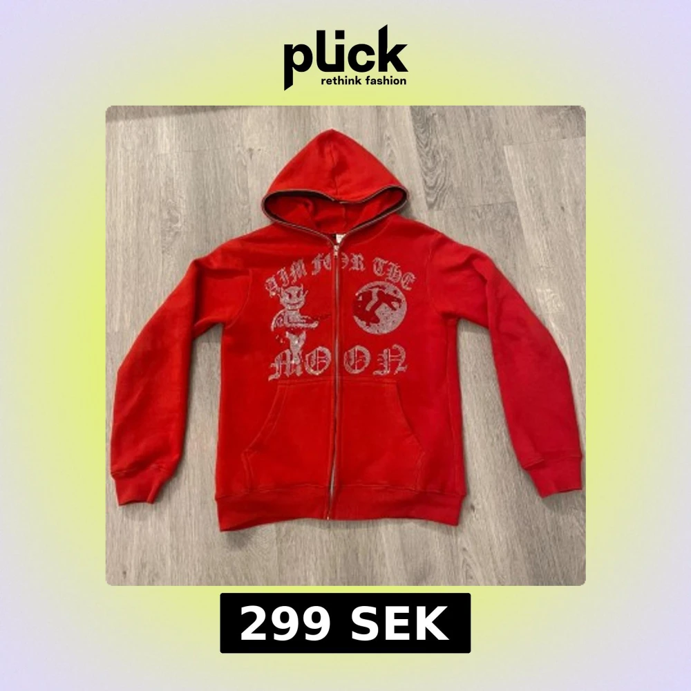 Aim for the moon zip up hoodie, storlek medium, använt skick 8/10, några rhinestones har lossnat men det märks knappt, kan bytas mot en lila tjocktröja.