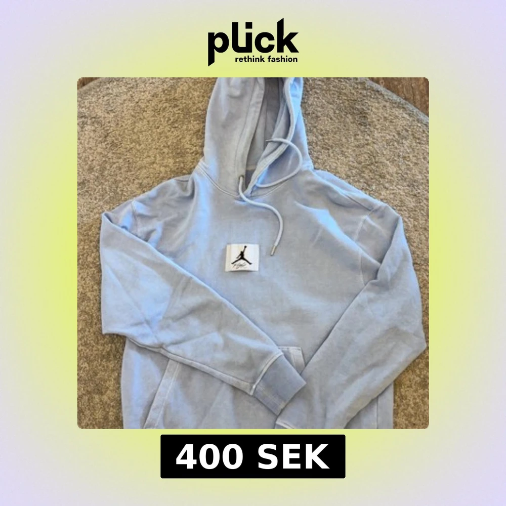 Jordan hoodie i ljusblå, cond 9/10, strl M men passar även en S