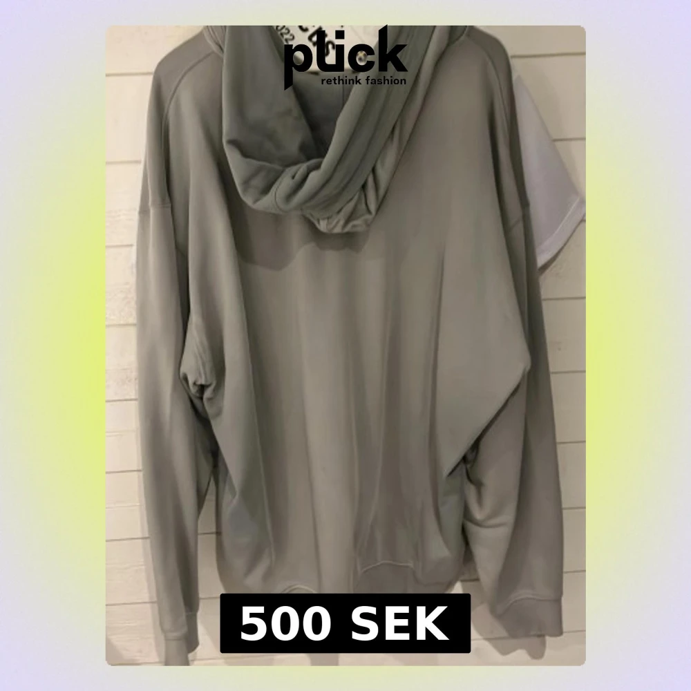 Snygg grå hoodie med dragkedja framtill och stora kängurufickor. Modellen har huva med dragsko och ribbade muddar vid ärmslut och nederkant. Perfekt för en avslappnad och stilren look.