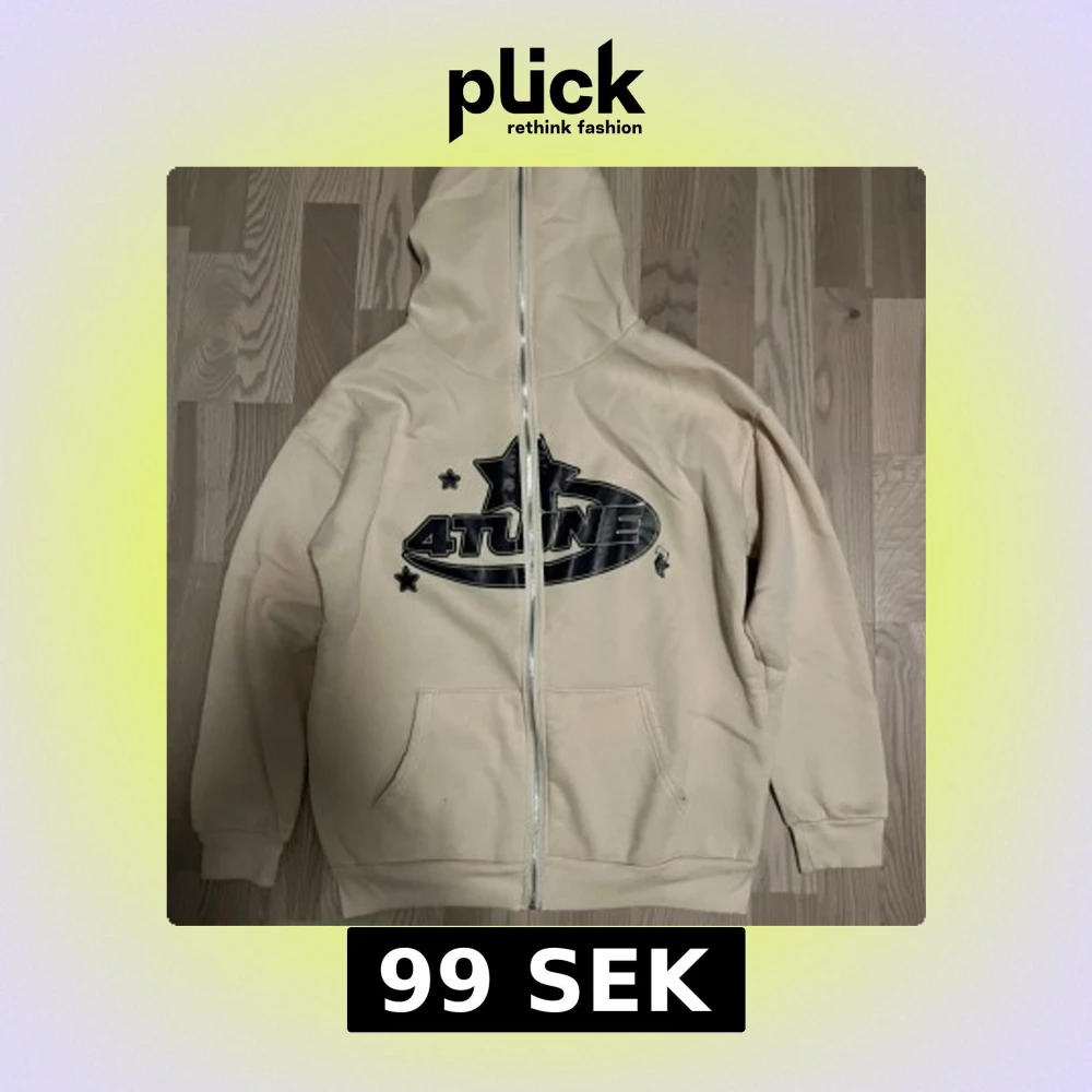 Beige hoodie från 4tune med coolt svart tryck och stjärnor både fram och bak. Tröjan har huva, hel dragkedja och två fickor framtill. Perfekt för dig som gillar streetwear och vill sticka ut med snygg grafik.