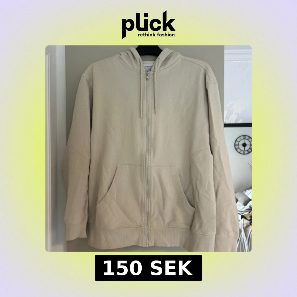 Säljer en stilren beige huvtröja från Studio Total storlek M. Tröjan har dragkedja framtill och en huva. Perfekt för en avslappnad look.