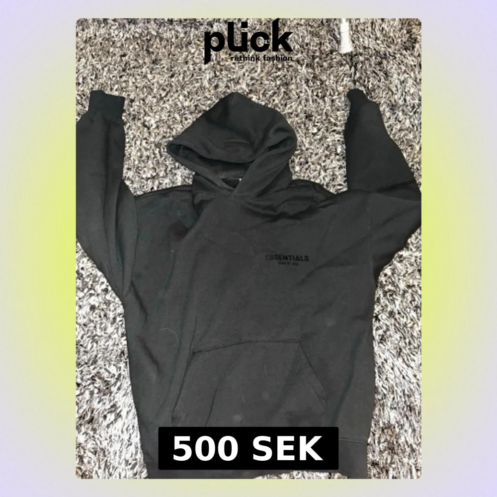 Snygg svart hoodie från Essentials Fear of God med diskret logga på bröstet. Klassisk passform med stor huva och magficka. Tillverkad i mjukt bomullsmaterial som är perfekt för en avslappnad streetwear-look.