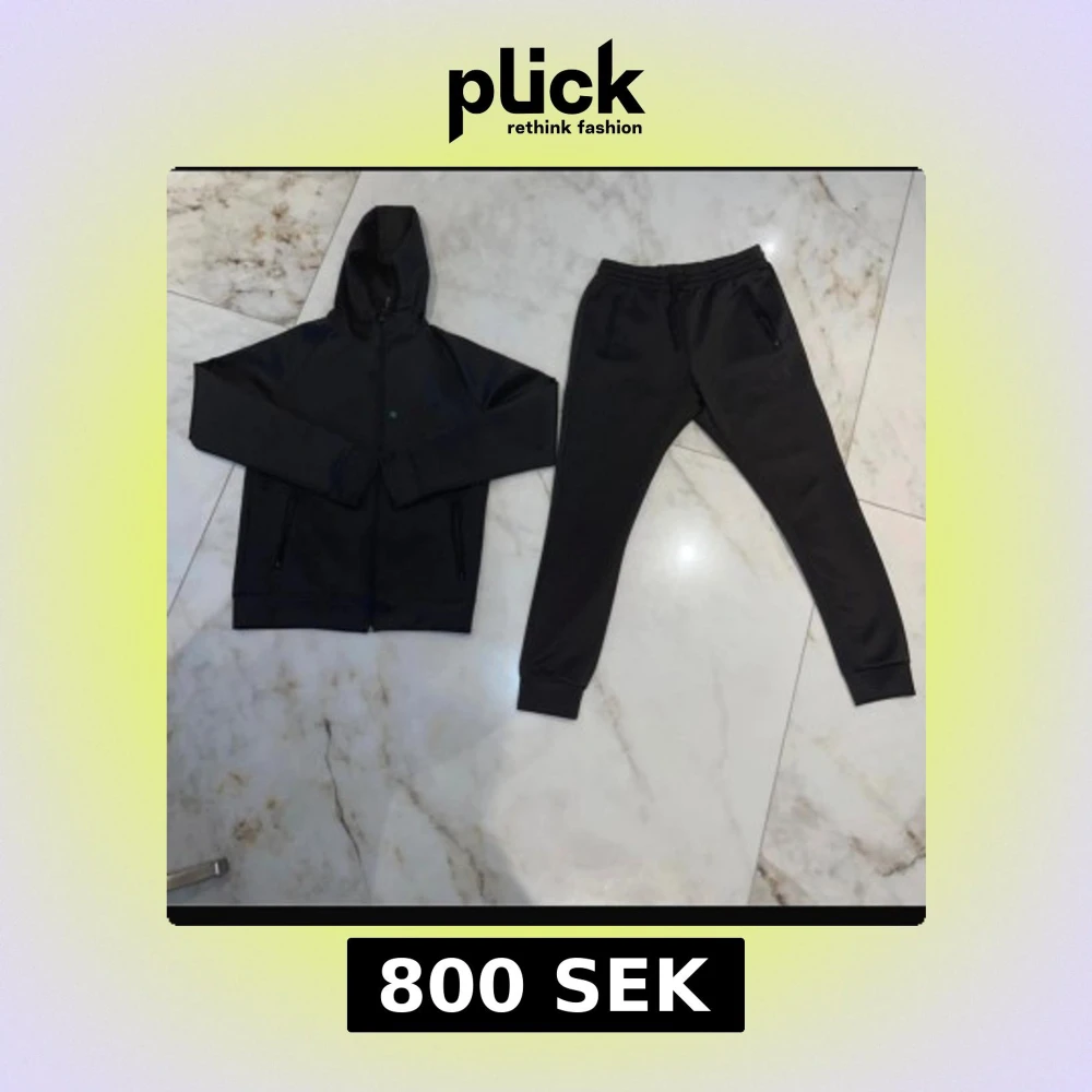 Säljer en svart tracksuit från Under Armour med dragkedja och två fickor framtill. Jackan har en sportig look med huva och diskret logga på bröstet. Perfekt för träning eller chill dagar.