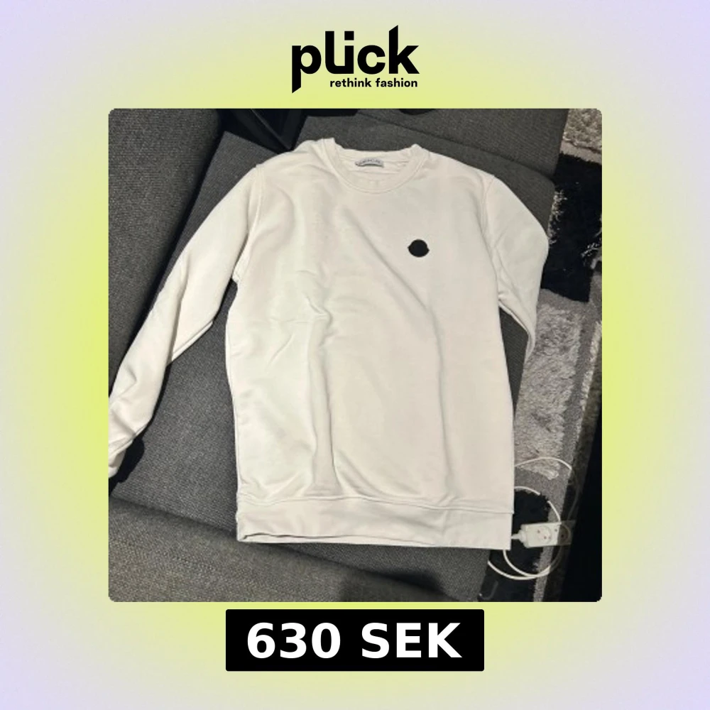 En snygg vit tröja som är knsppt använd. Den är storlek M men står L. Den har lite fläckar men man ser dom knappt, du ser dom om du kollar riktigt noga.