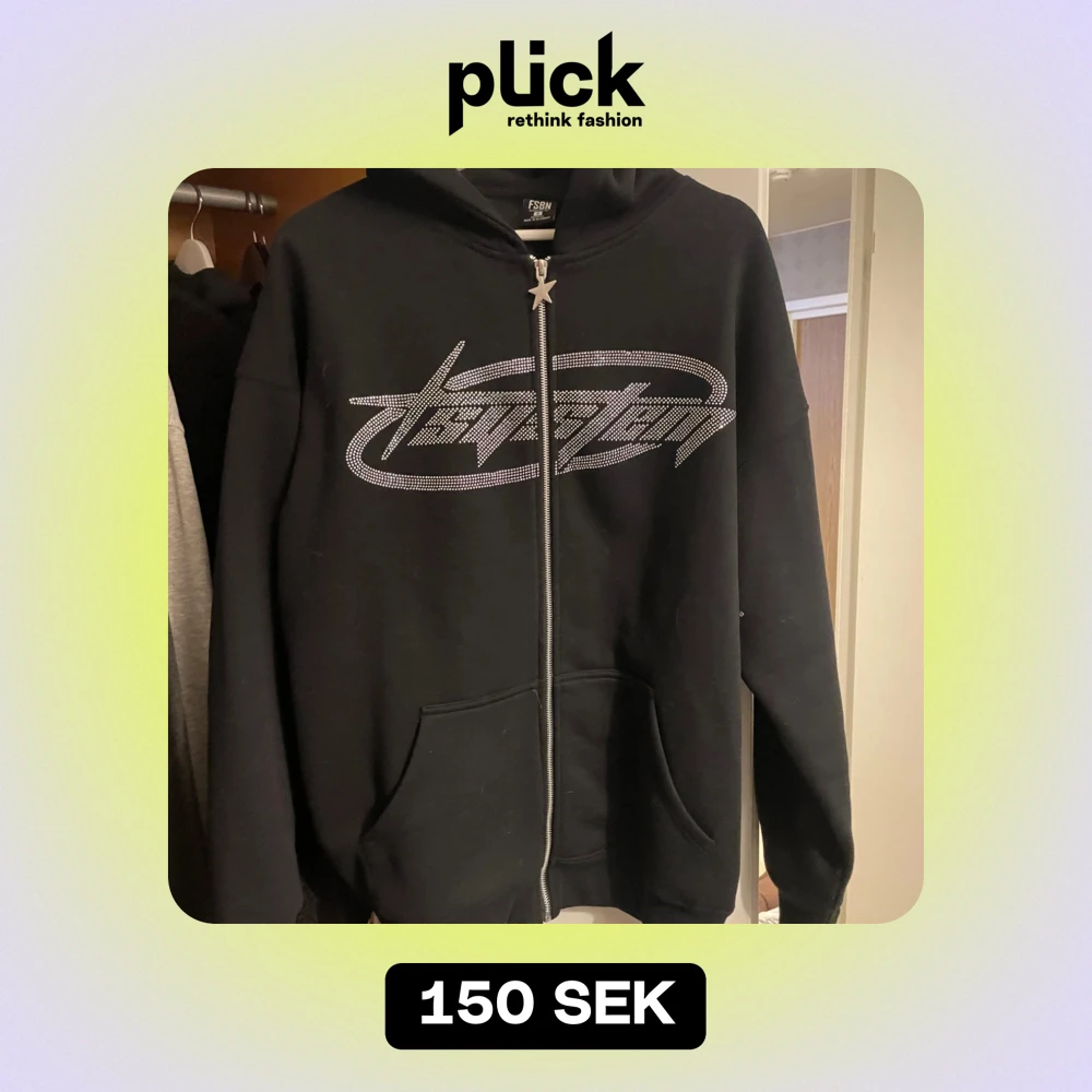 Snygg svart tröja med dragkedja, perfekt skick använd 1 gång men säljer för de inte är min stil. Storleken är S men sitter mer som en M