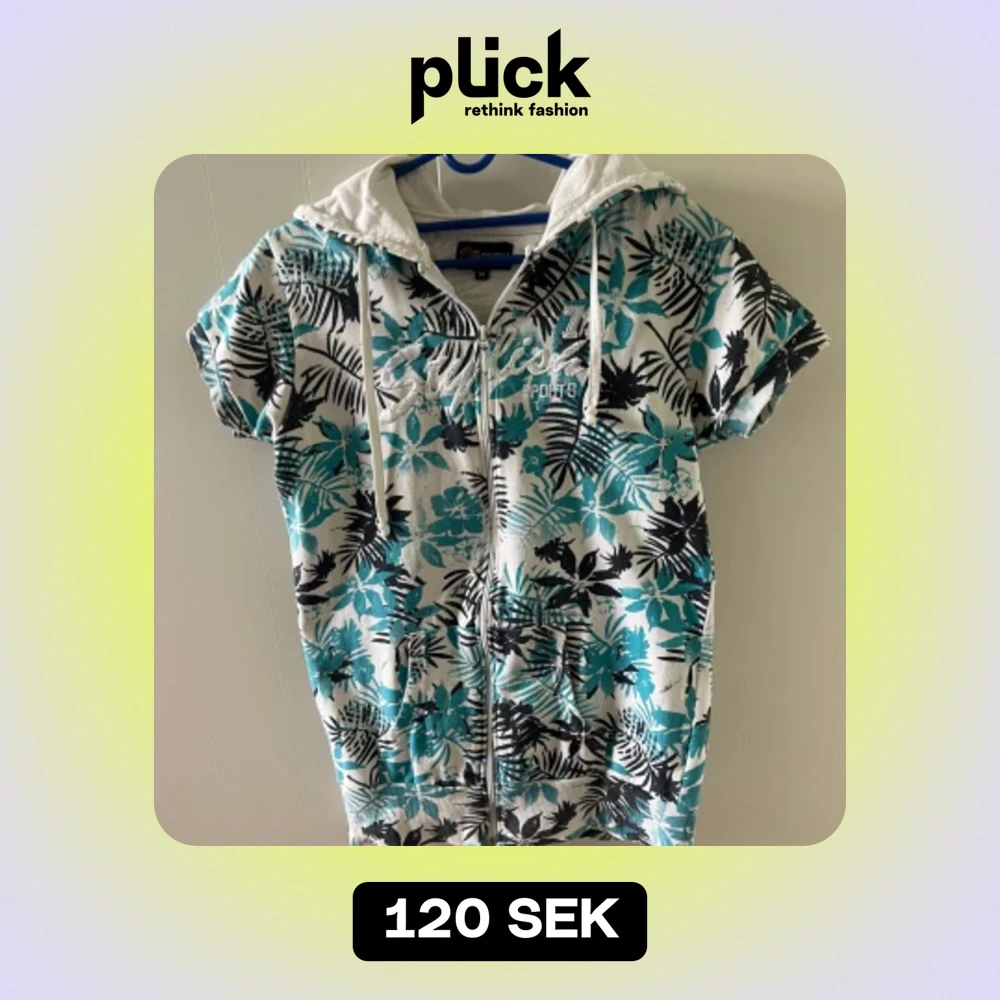 Kortärmad huvtröja med delad känguruficka och full-längds dragkedja. Broderi se bild. Kapushong med dragsko. St. M Bomull I fint använt skick.