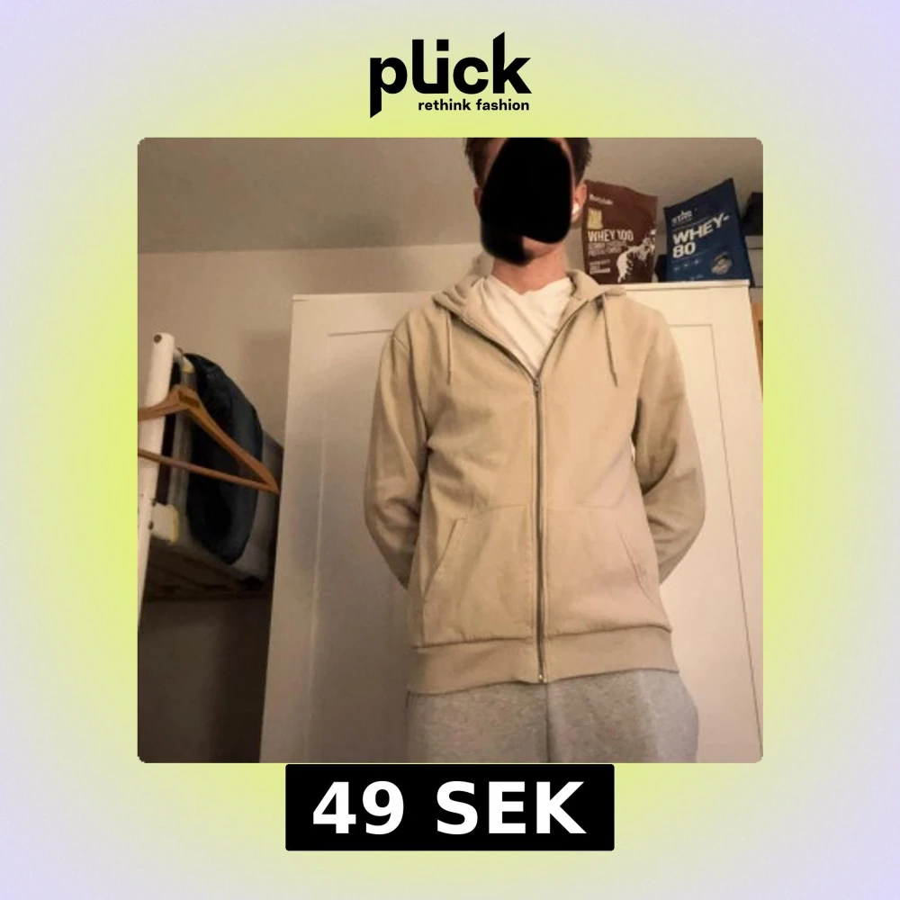 Beige hoodie med huva och hel dragkedja framtill. Jackan har två stora fickor på magen och ribbade muddar vid ärmslut och nederkant. Perfekt för en chill och avslappnad stil.